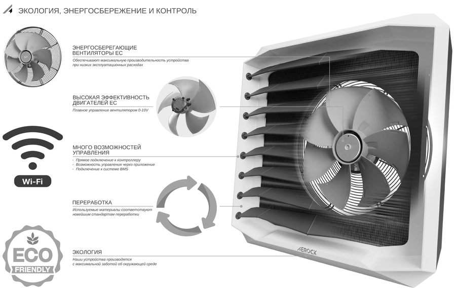 Экономичная модель Водяной тепловентилятора AEROCK MINI R3 EC с электронно-коммутируемым двигателем и плавной регулировкой представляет собой современное устройство, предназначенное для оптимизации процессов вентиляции и климат-контроля в помещениях. Данное устройство сочетает в себе высокую эффективность, низкое энергопотребление и удобство в эксплуатации.